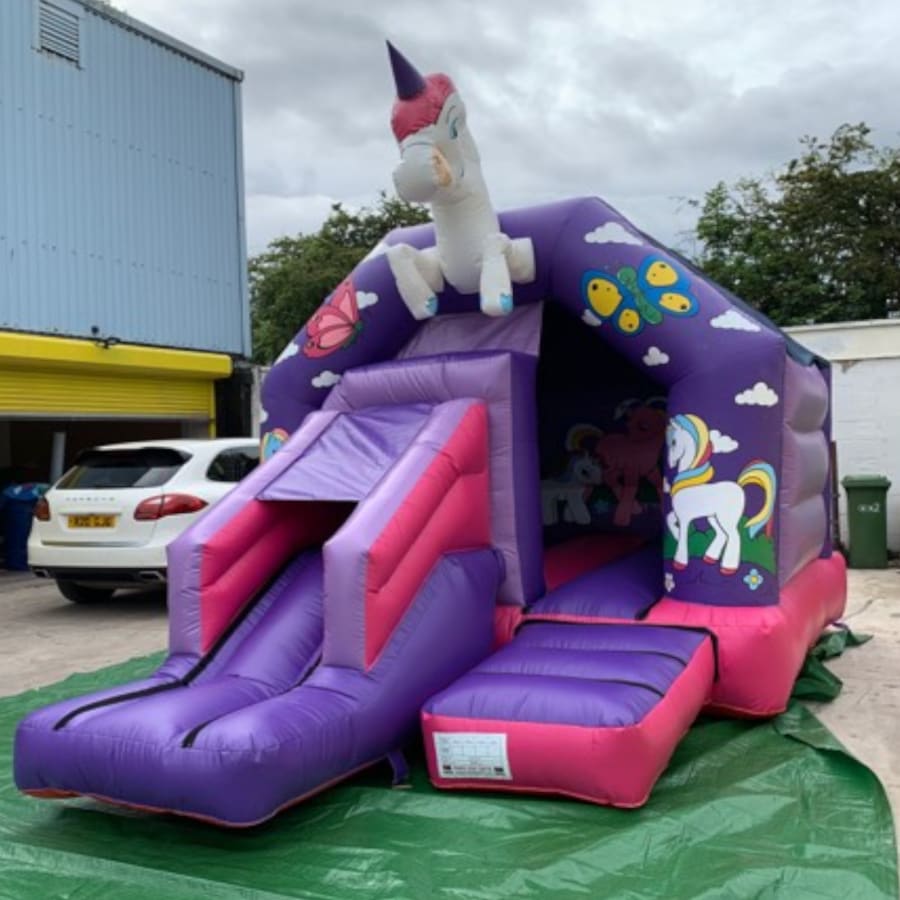 Our unicorn castle with slide is now available to hire in Manchester and Stockport, Impress all your party guests with the best castle with slide in Manchester, with a real life like inflatable Unicorn on the top of the castle will sure be big hit with all children of all ages!