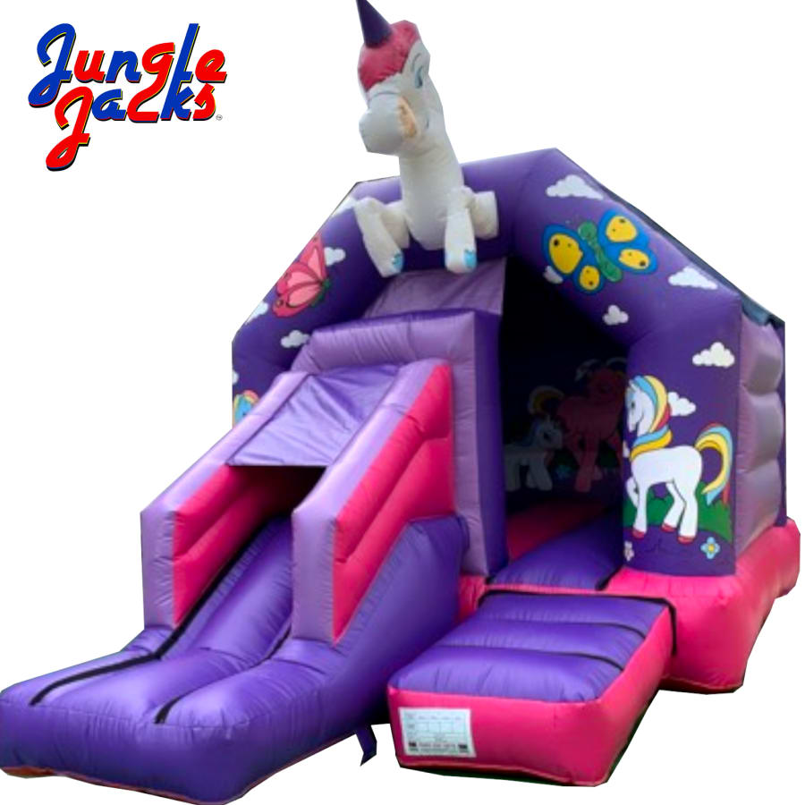 This Bouncy castle is 12ft wide and 17ft long and with the slide being at the front doesn't take too much space especially if your garden is narrow. Dont delay book this castle today! It is one of our most popular castles so dont let this unicorn escape your party!!!